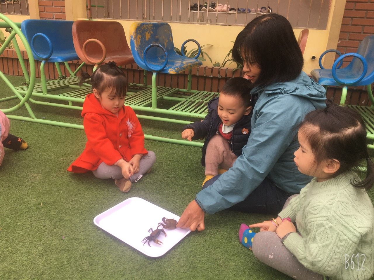 HOẠT ĐỘNG NHẬN BIẾT CON CUA CỦA CÁC BÉ LỚP NHÀ TRẺ D4