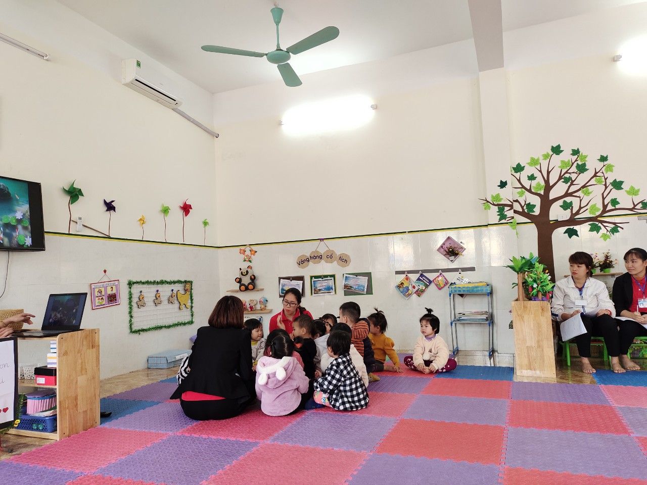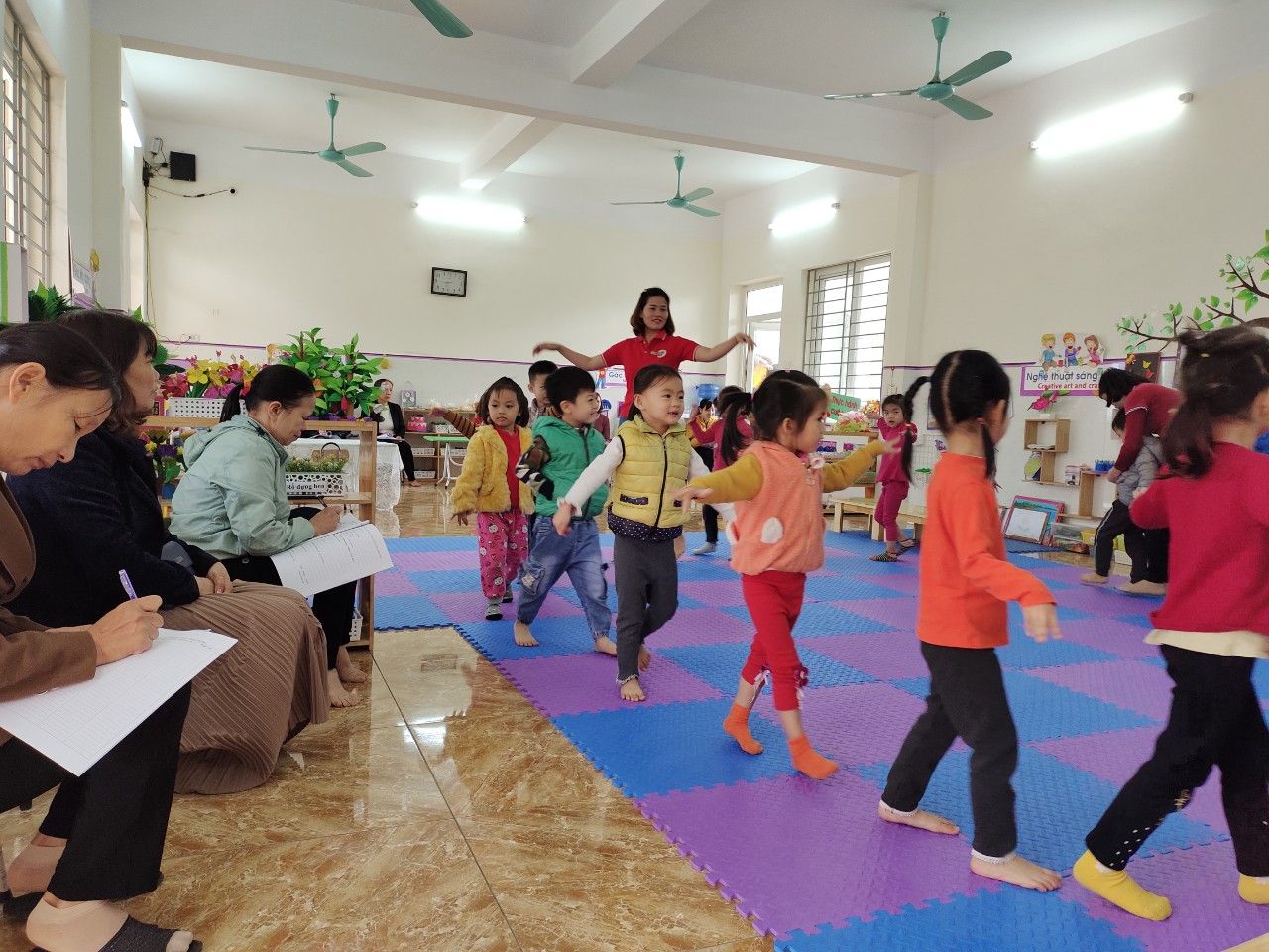 Trường Mầm non An Tiến đã tổ chức kiến tập các hoạt động: trò chuyện sáng, giao lưu kết nối giữa các trẻ cùng độ tuổi, giữa các độ tuổi khác nhau, giữa trẻ với phụ huynh và môi trường thiên nhiên....